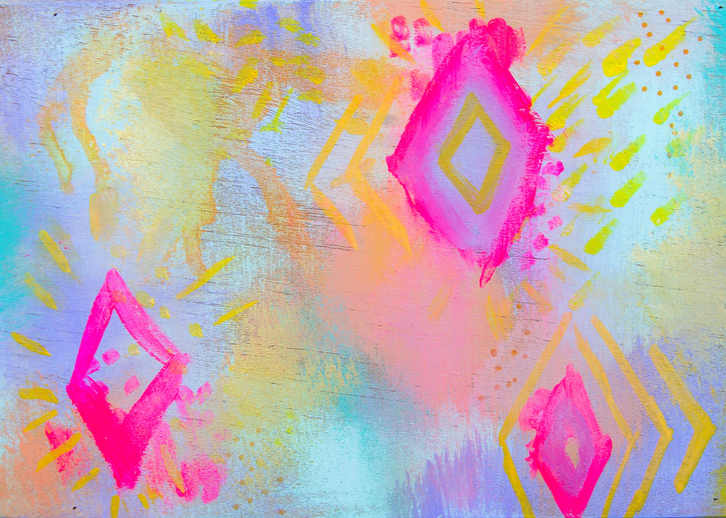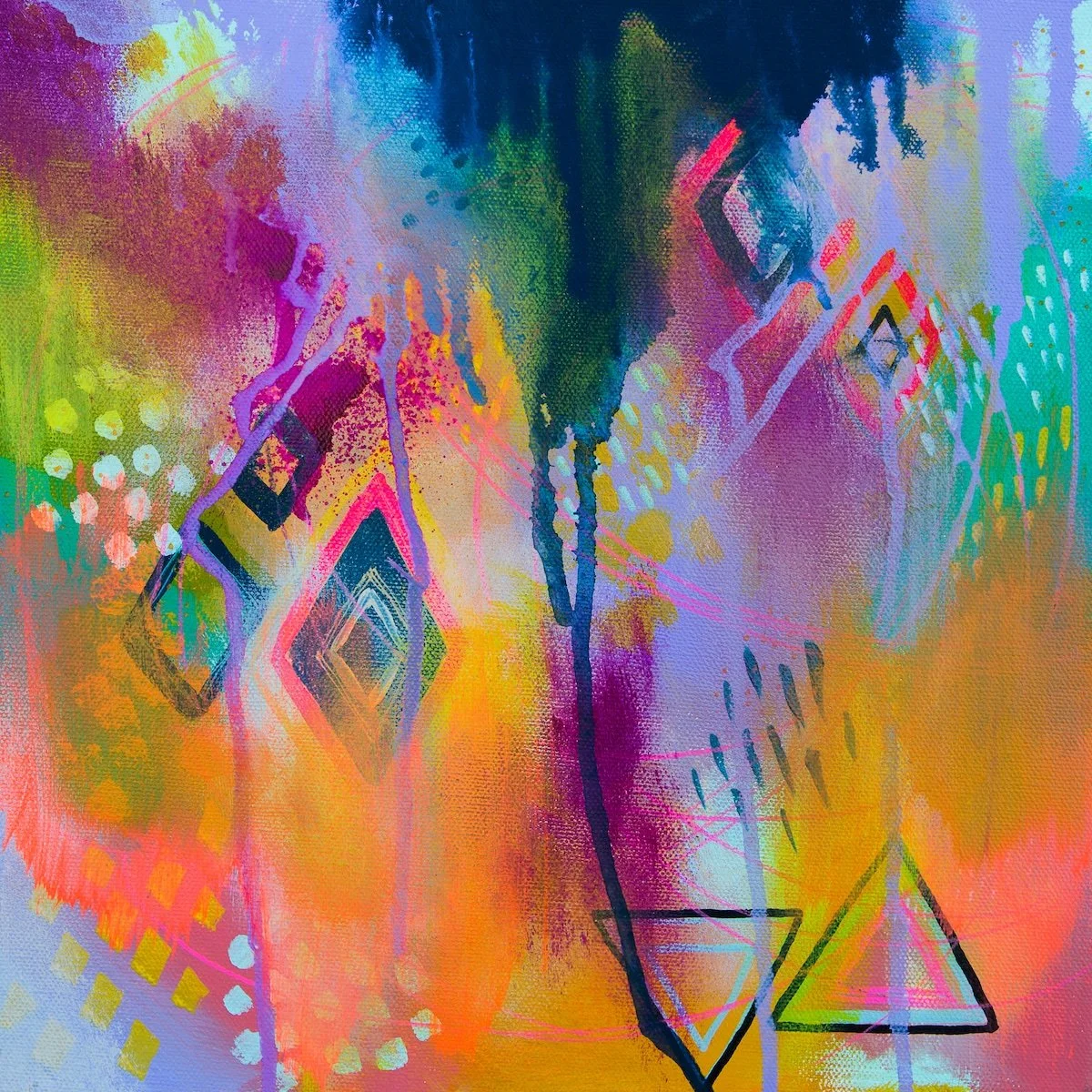Painting intuitively allows me to express myself freely and fluidly, and I enjoy creating something from what is seemingly nothing. My pieces are colorful and honest perceptions of my world and visual extensions of who I am - bright, warm, and energetic. In addition to painting with my intuition, I am intentional in layering colors with marks and shapes.