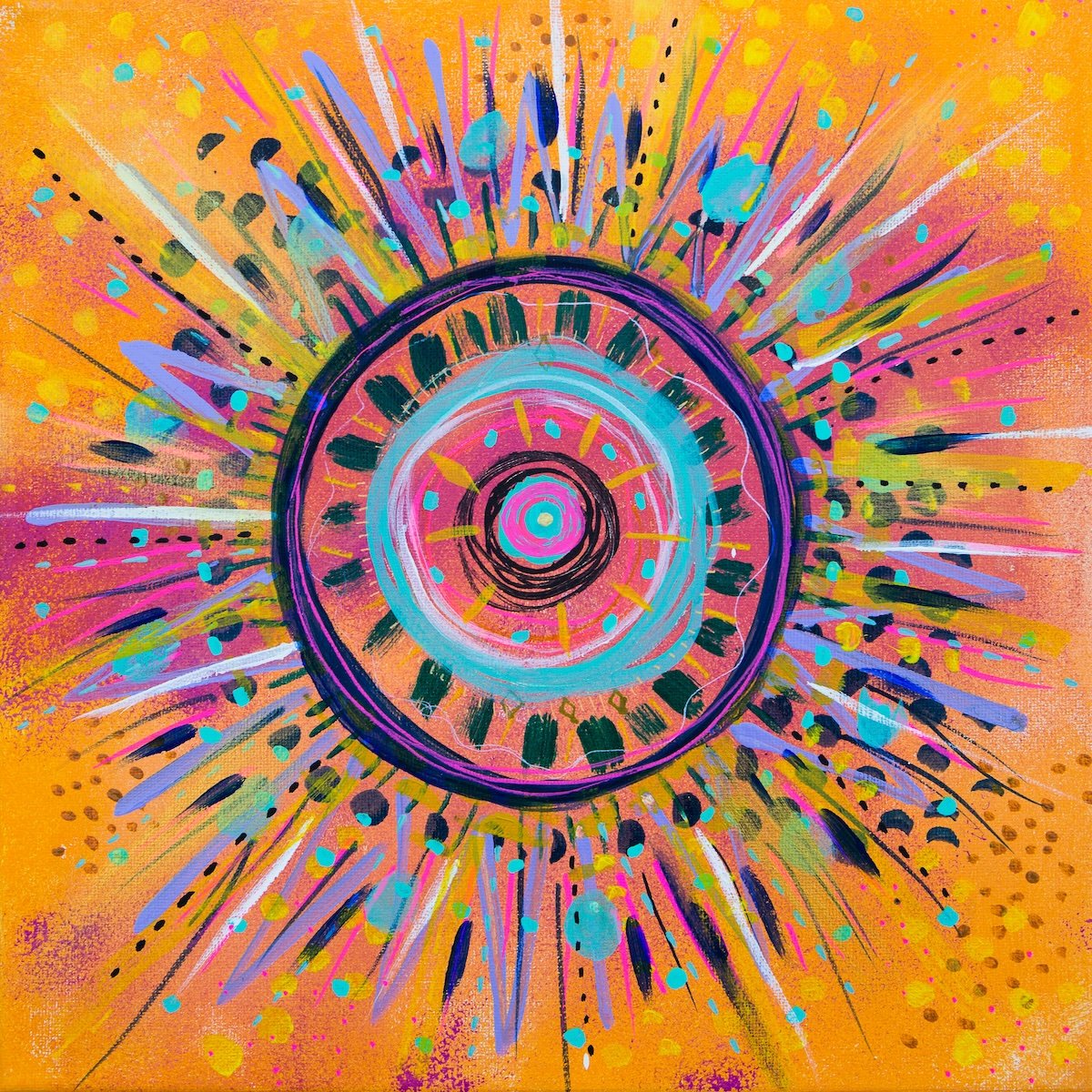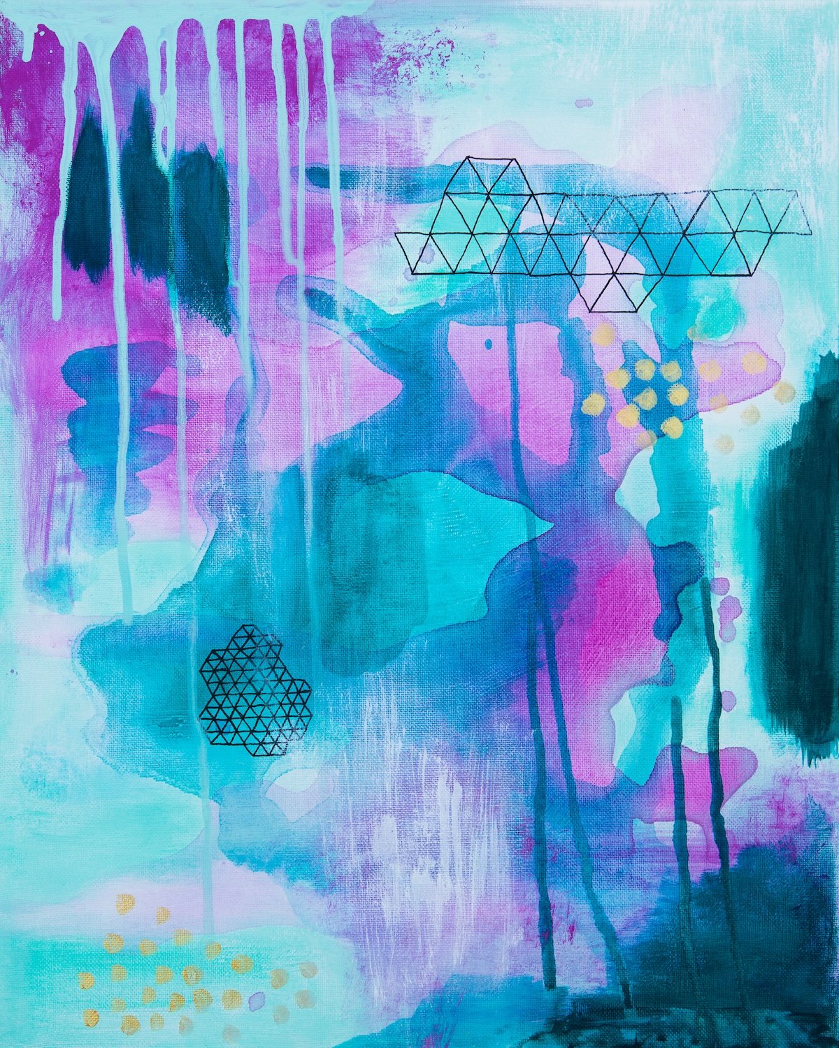 I am inspired by colors, sacred geometry, nature, and positive affirmations. Being inspired by color, I always start each painting by choosing the pigments I want to work with. Because I usually paint intuitively, I don’t know how the piece will turn out until it feels finished, and I enjoy this organic process of becoming. I want my audience to walk away with a sense of joy, calm, and feeling uplifted.